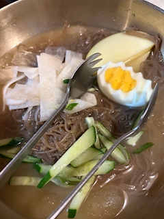 こないだ韓国料理食べに行った時の冷麺! 昔韓国行った時に食べたのと 麺がそっくりだった!!! 本場の麺と同じなのかな🌟 また行きたいなーっ!