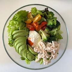 昨日はキラキラ女子に憧れて お洒落サラダを作ったよ(?)😻 たまご爆発してびっくりしちゃった🫢 美味しかった☺️ まなみ