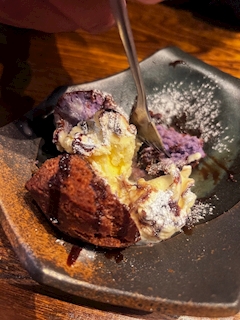食べかけ😋 今日はじめての 南風にいきました💞 気になってから嬉しい〜!!!🎶 デザートの紅芋サーターアンダギーバニラアイス 美味しすぎたので 行った方はぜひ食べてくださーーーーい!!