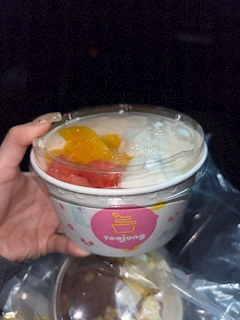 こんばんはーーー🌛 この間流行ってるヨーグルトアイス 食べたの!!!! うれちー!!!☺️ グレープフルーツいっぱいで おいしかったなーーー😽 ドバイチョコ餅?が人気らしくて 売り切れ😳 食べてみたかった、、、🥺 今度リベンジしなきゃーーー! まなみ