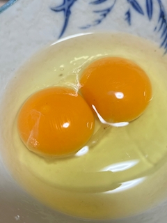 実家ですき焼き食べときに 双子ちゃんの卵があったよ🥰 なんか幸せな気持ちになった♡
